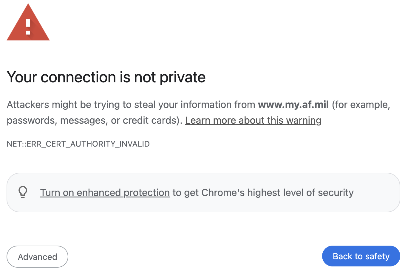 Let's take an infamous example - connecting to a Military or Government website with a personal device and getting a certificate error.